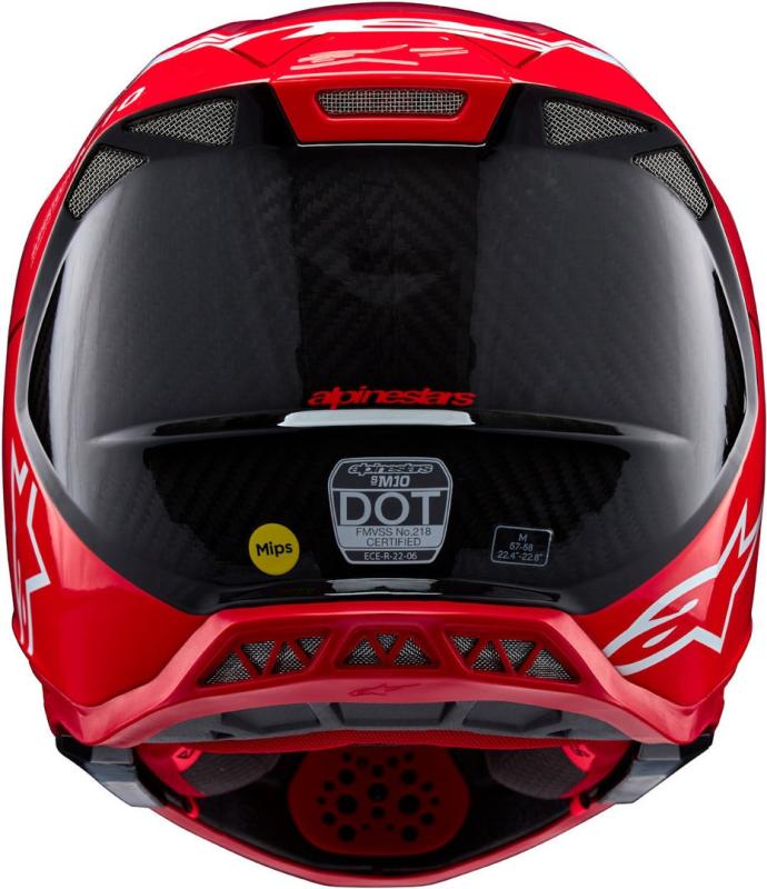 Målet med hjälmfamiljen Alpinestars Supertech var att skapa de mest avancerade, skyddande och högpresterande hjälmarna för förare över hela världen. Med S-M10 har Alpinestars hjälmutvecklingsteam konstruerat hjälmen för att ge den perfekta blandningen av överlägsen ventilation och oöverträffad komfort för att skapa en hjälm med lättast möjliga vikt utan att kompromissa på andra områden. S-M10-designen erbjuder en jämn, attraktiv, aerodynamisk profil som är strömlinjeformad och fri från externa profiler och funktioner som kan fungera som en stresspunkt vid en kollision eller äventyra den övergripande integriteten hos hjälmdesignen. Ytans krökning främjar mindre friktion vid stötar, vilket möjliggör avböjning och den mest effektiva överföringen av energi för att skydda ryttarens huvud från direkt kraft på skallen, nacken och ryggraden.